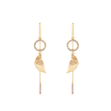ANGEL WING MINI EARRINGS GOLD CRYSTAL CIRCLE – NEW 2024