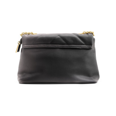 Flexibly structured our Isabella monogram shoulder bag with front flap, featuring interlaced yellow gold-tone hardware, a PU and metal chain strap that can be worn doubled on the shoulder and ‘Y’ quilted overstiching.